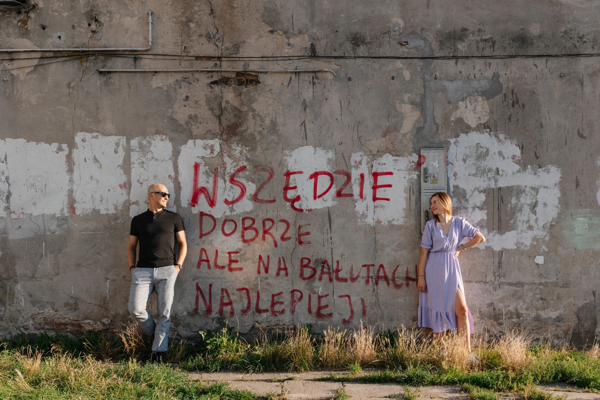 Wiecie, kiedy Werka i Mati powiedzieli nam, że chcą zrobić swoją sesję narzeczeńską na Bałutach, musimy przyznać – nieco się zdziwiliśmy. Bałuty? Ta dzielnica Łodzi nie kojarzy się przecież z typowymi miejscówkami na romantyczne kadry. Brak tam estetycznych kamieniczek, kawiarni, czy malowniczych parków, w których możemy zakończyć sesję. Bałuty to klimat bardziej surowy, nieoszlifowany, z obdrapanymi murami, starymi kamienicami, trzepakami, z miejscami, które widziały już wiele. To także dzielnica, którą przemierza się raczej szybszym krokiem maszerując między jedną a drugą Żabką, czy Kapselkiem. Ale wiecie co? Ta dzielnica ma swoją historię i charakter, którego nie znaleźlibyśmy nigdzie indziej. I właśnie dlatego Werka i Mati wybrali Bałuty – bo to ich miejsce, ich lokacja i ich miłość. Przystaliśmy na ich szalony pomysł i ta wymarzona miejska sesja narzeczeńska na Bałutach skradła nasze serca!