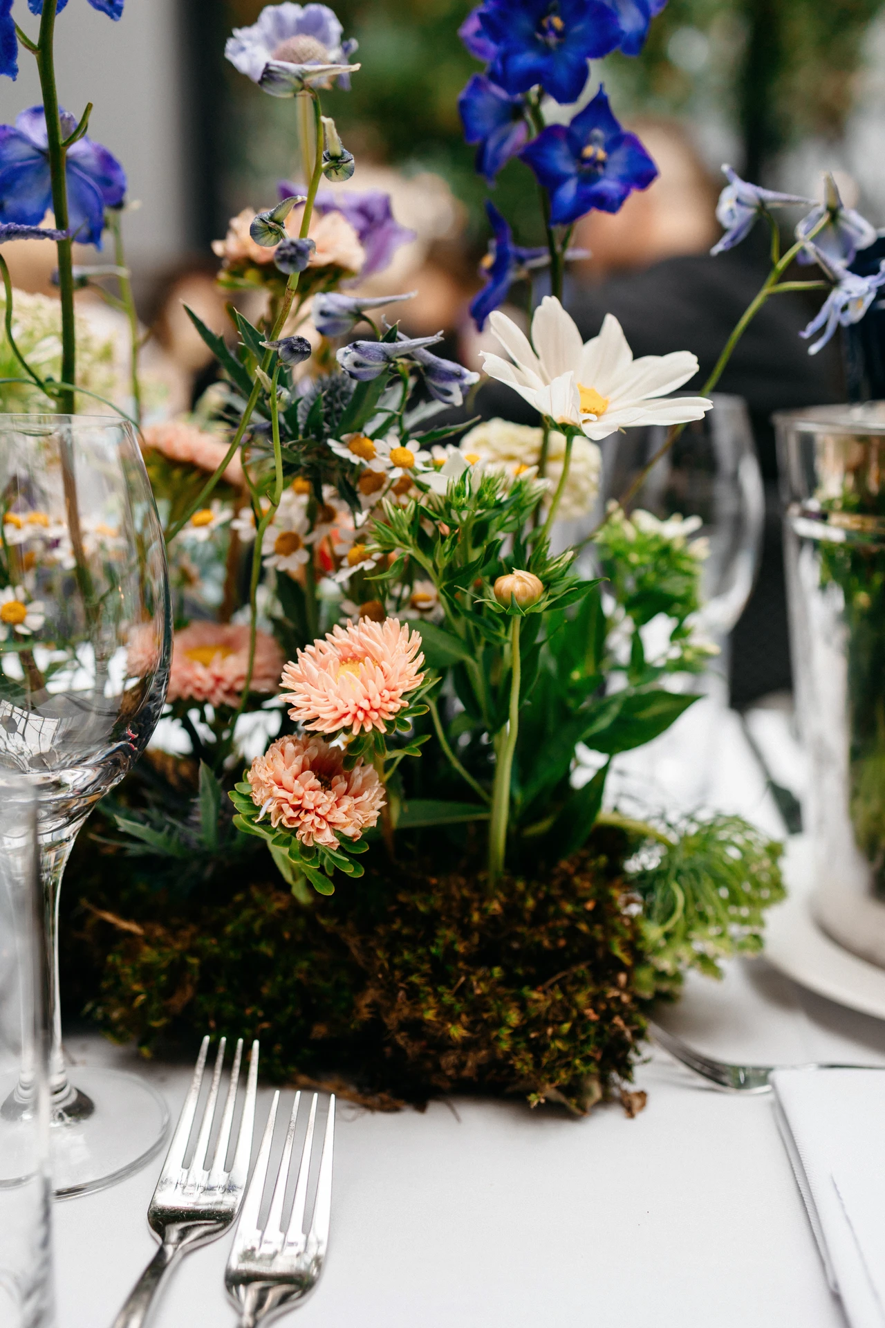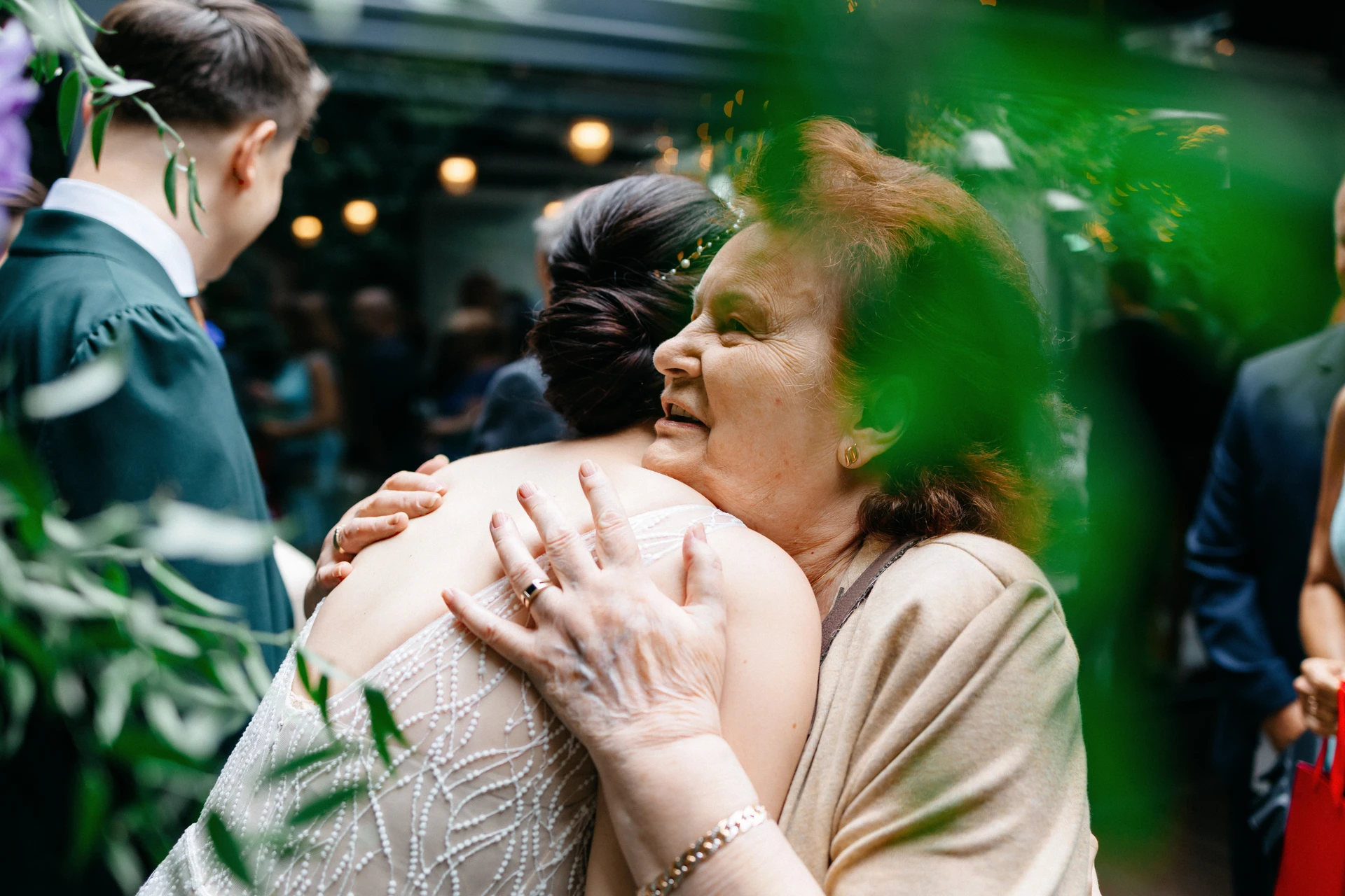 Ceremonia odbyła się w towarzystwie najbliższych – to ten krąg ludzi, który sprawia, że wszystko jest na luzie, ale równocześnie mega wzruszające. Szczerze? Mieliśmy wrażenie, że atmosfera dosłownie wibruje od emocji. I do tego magia lokacji oraz kolorowe dekoracje od Kwiatowa Robota w odcieniach fioletu i zieleni, które maksymalnie dopełniły ten obrazek, nadając uroczystości charakteru.