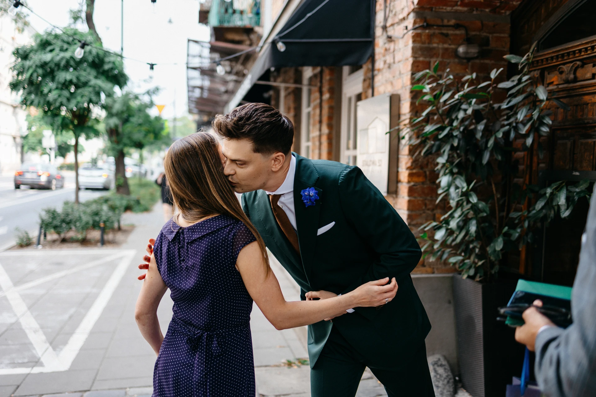 Sesje w mieście mają to coś – tę niepowtarzalną mieszankę surowej architektury i radosnych emocji. W przestrzeni miejskiej można bawić się geometrią budynków, wplatając parę w linie murów czy oświetlenie ulicznych latarni. Z graffiti w tle, ceglaną ścianą, a nawet zwykłym przystankiem, każda scena nabiera dodatkowego kontekstu i głębi. To zupełnie inny klimat niż klasyczne, zielone plenery – bardziej dynamiczny, nowoczesny, i przede wszystkim bardzo charakterny.