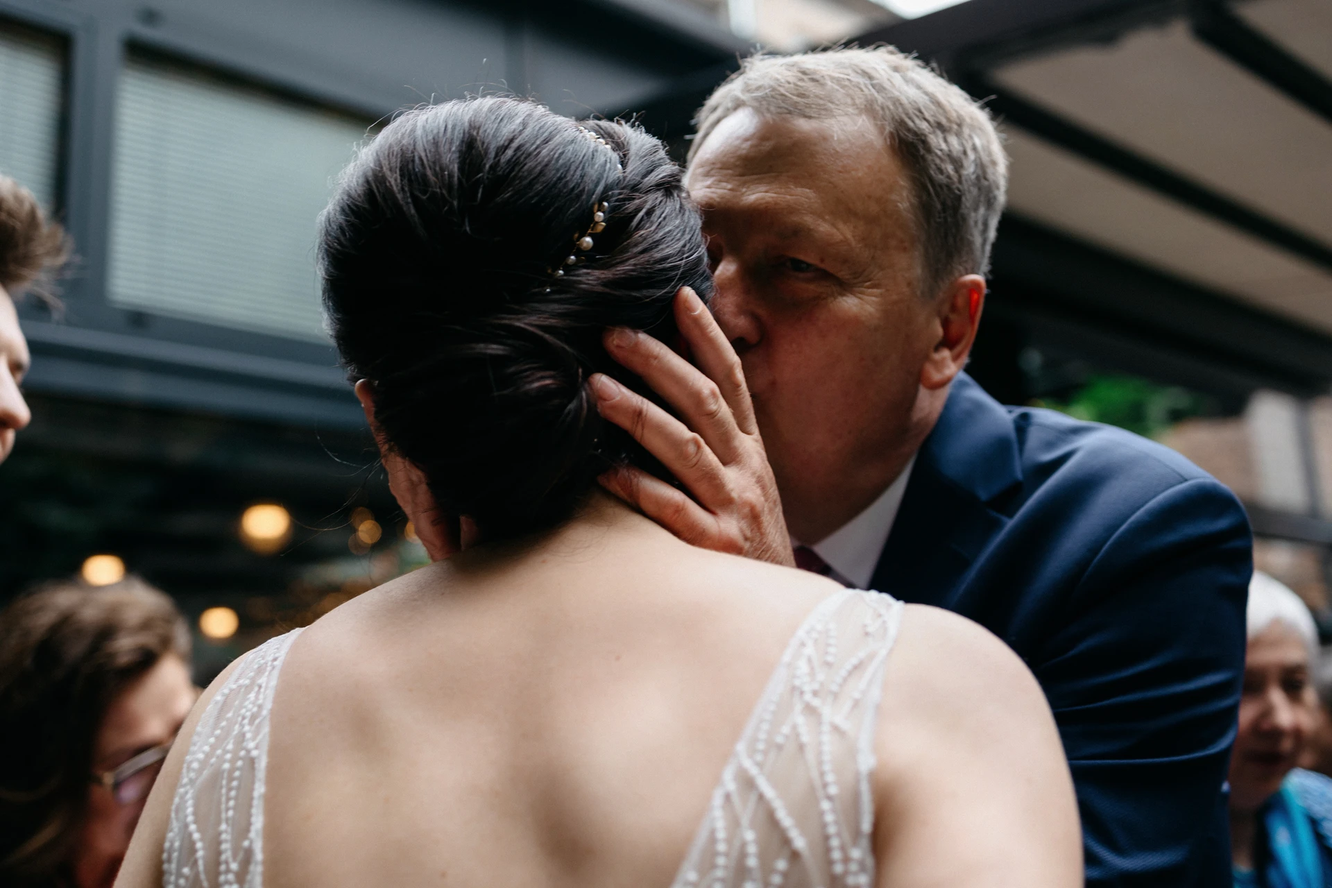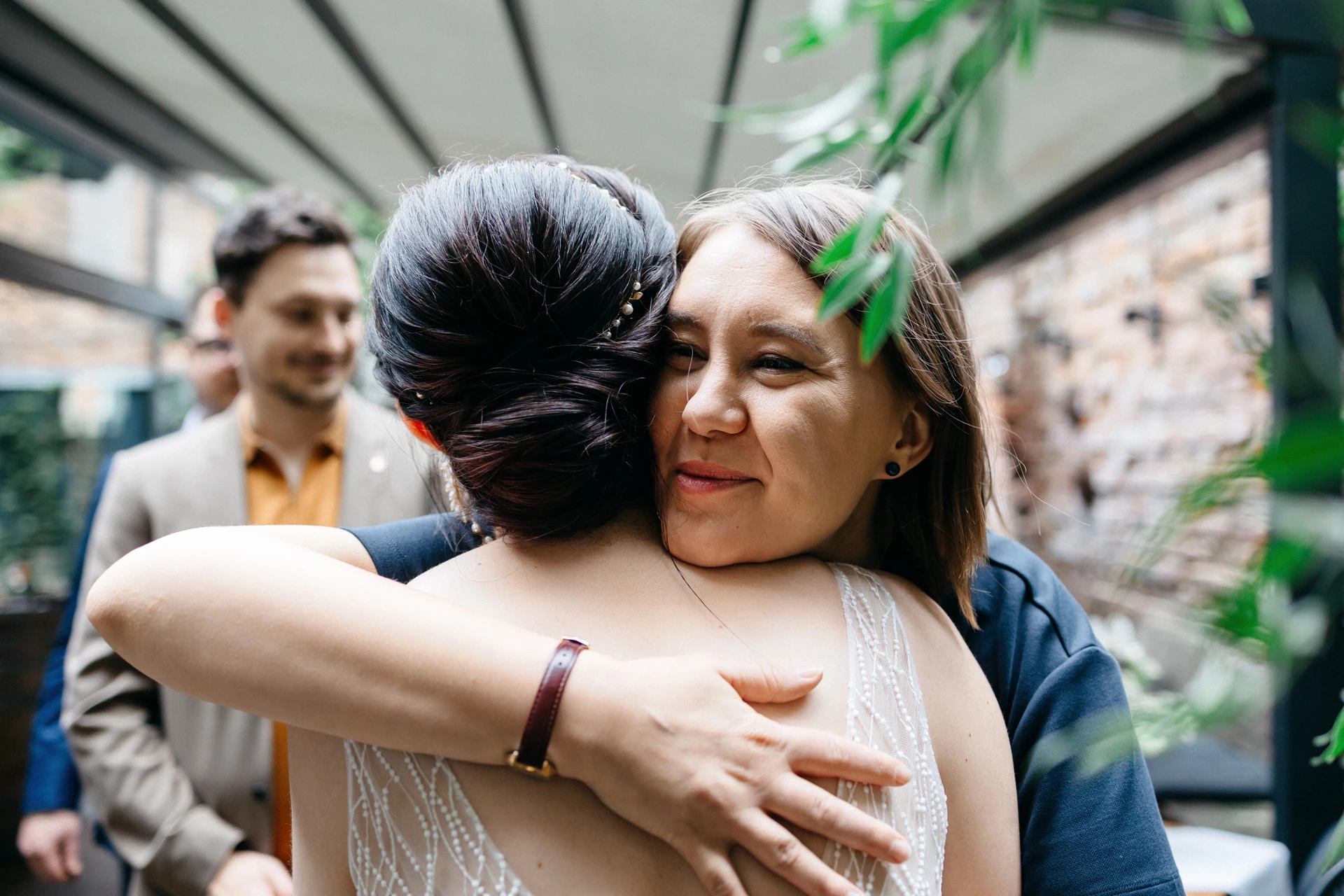Śluby cywilne mają swój wyjątkowy klimat – krótka formułka, konkretne słowa, ale jakże pełne emocji! Taki był właśnie ślub Agaty i Grzegorza, który odbył się w nietuzinkowym miejscu, bo na klimatycznym patio Art Bistro Stalowa 52. Gdy tylko weszliśmy do środka, poczuliśmy, że to będzie wyjątkowy dzień. Miejsce skryte w sercu Pragi, pełne cegły, bluszczu i tajemniczości. Czego chcieć więcej? Całość miała miejski, ale jednocześnie bardzo kameralny i industrialny vibe – idealnie wpisujący się w nasz gust.