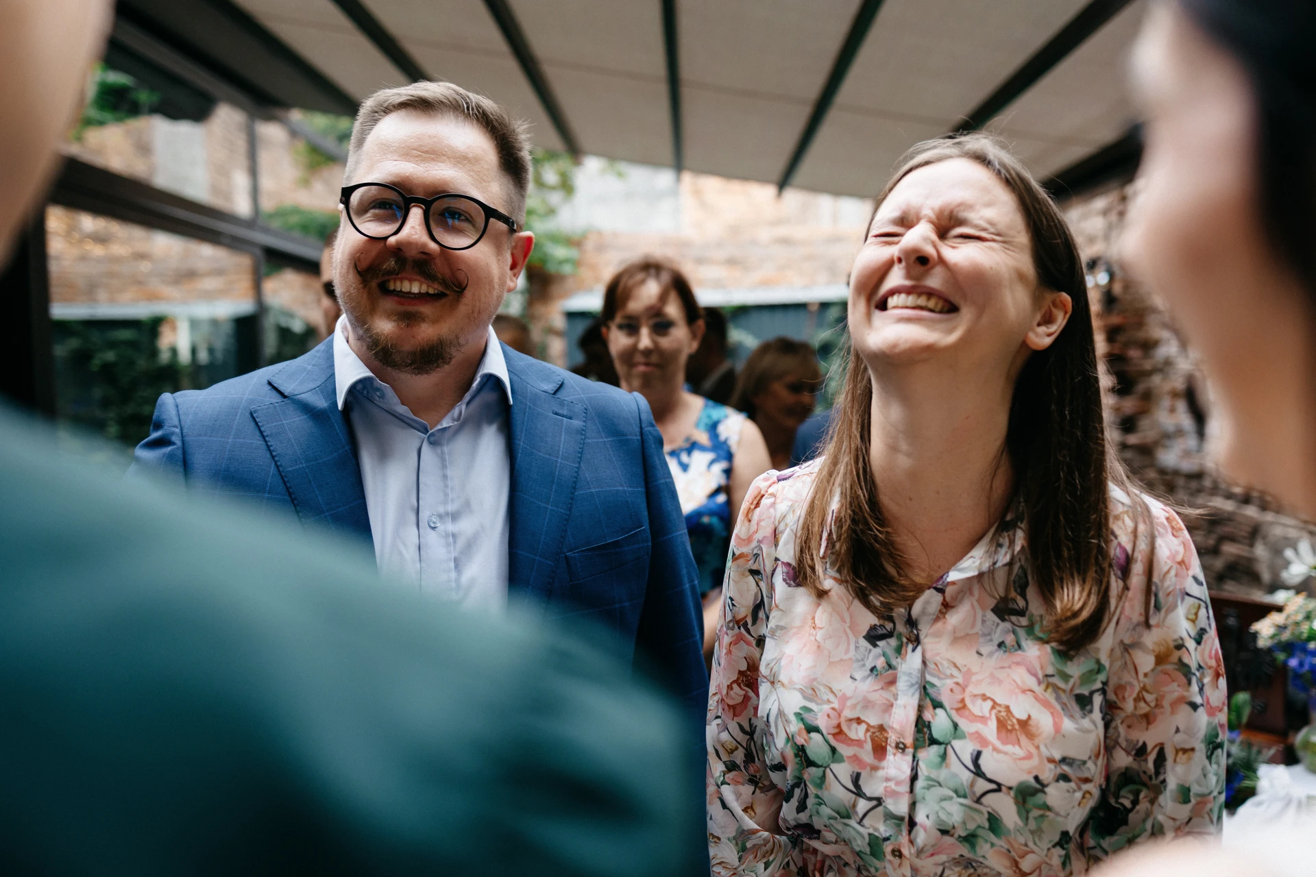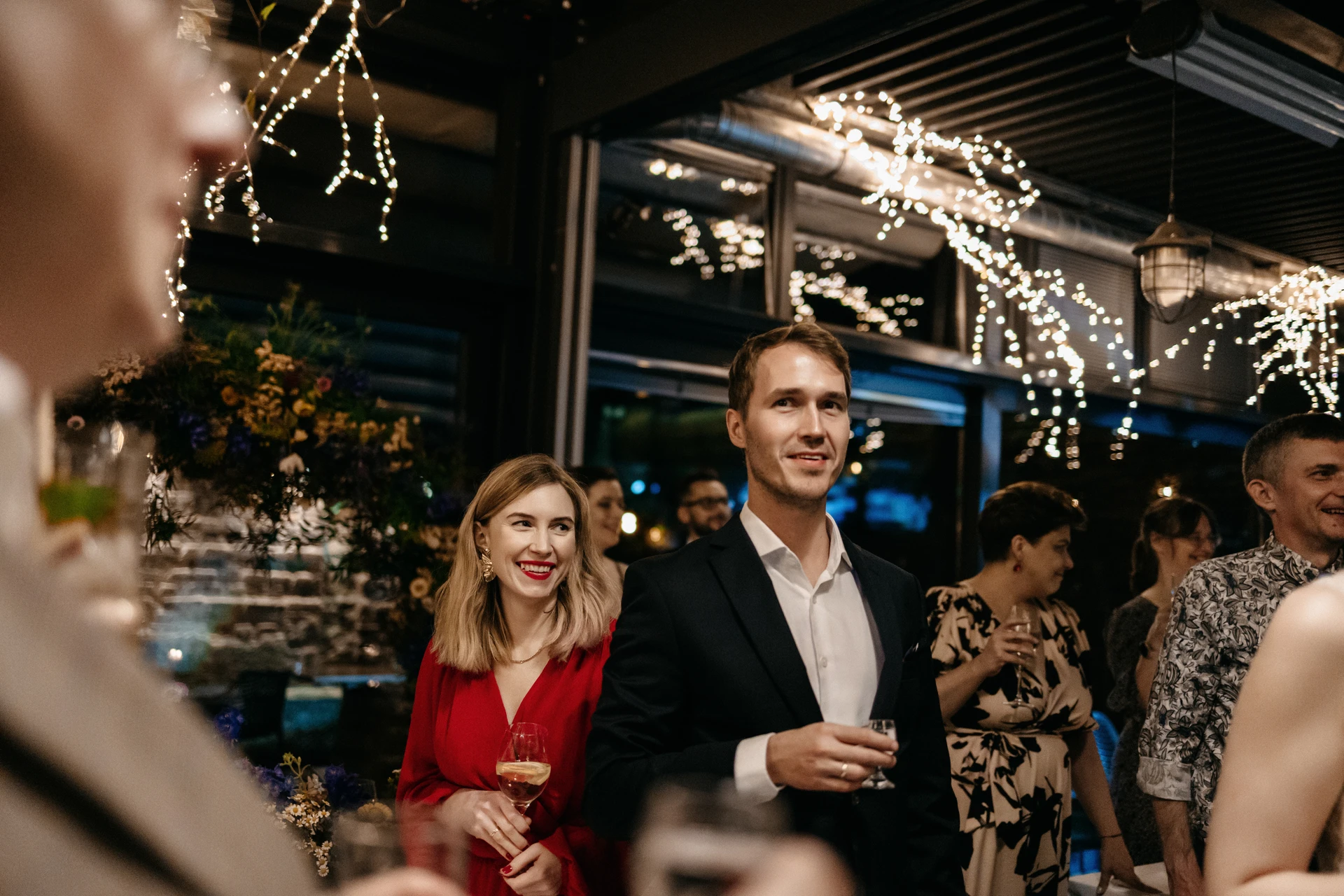 A zabawa? Oj, działo się! Niby kameralne, ale z energią, która mogłaby zasilić pół Pragi. Muzyka, tańce, śmiechy – było po prostu idealnie. Tak to już jest, kiedy masz dookoła siebie tych, którzy są dla Ciebie najważniejsi. Czasem wystarczy parę dobrych kawałków, wybornie podany obiad i wesele trwa w najlepsze!