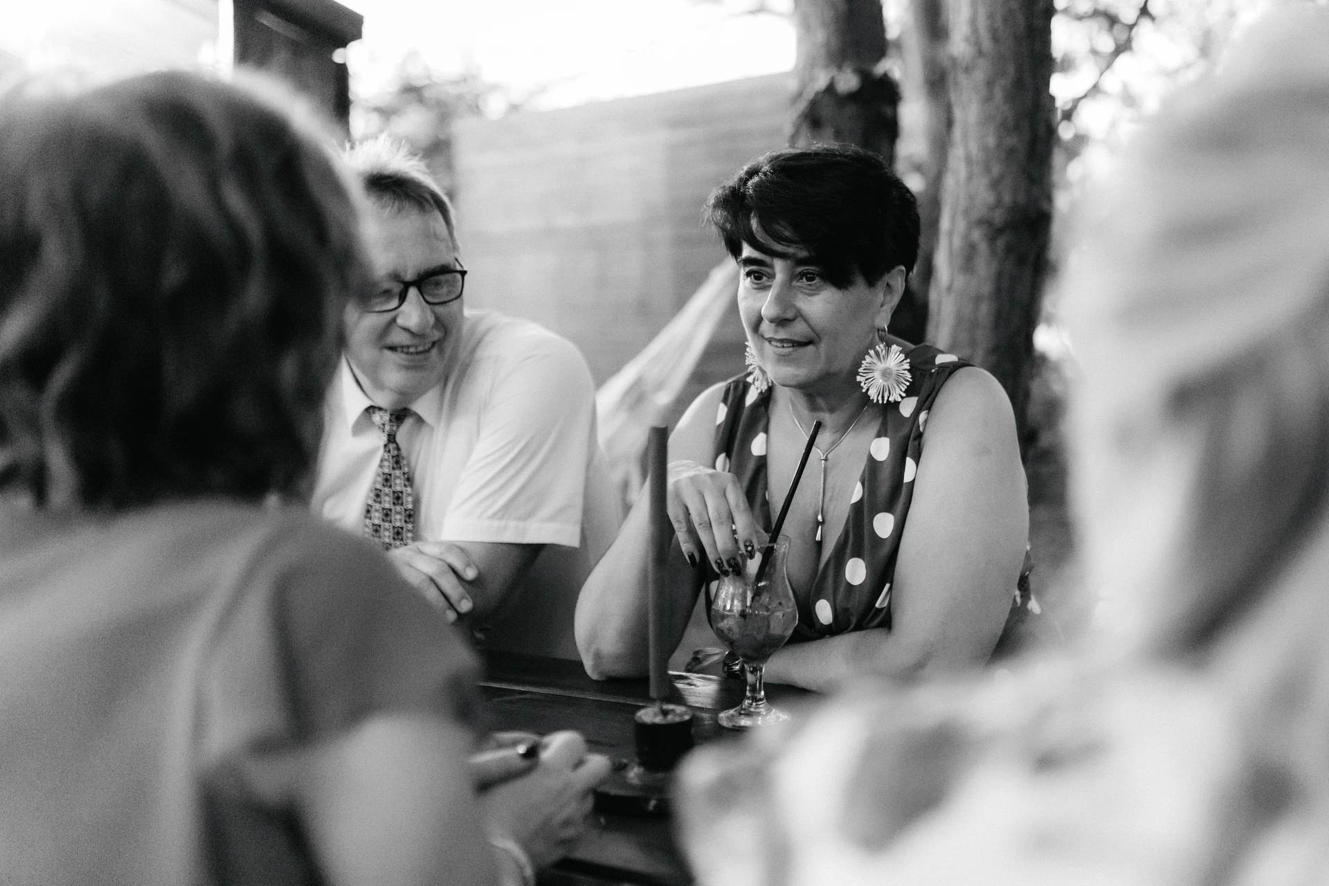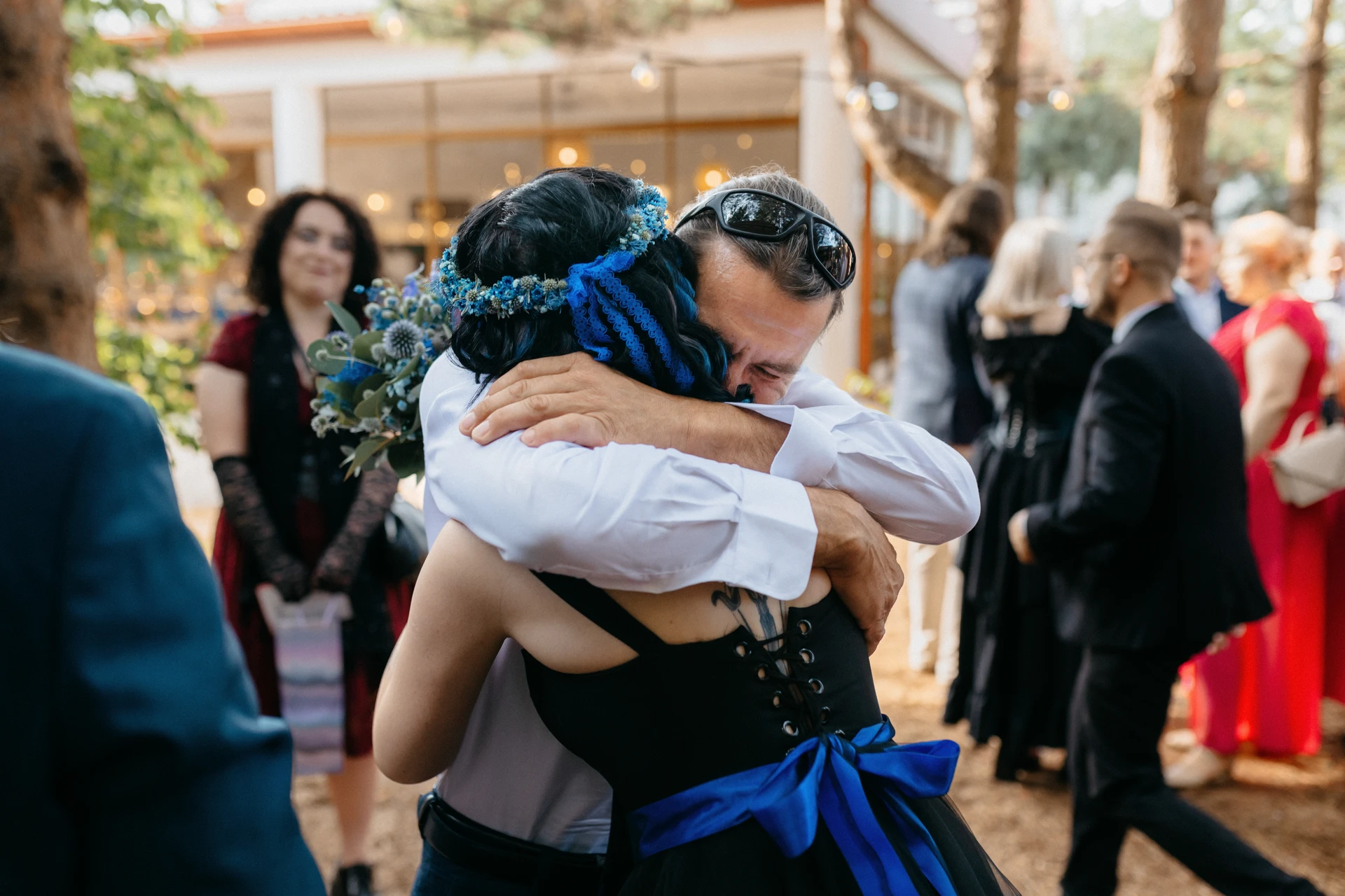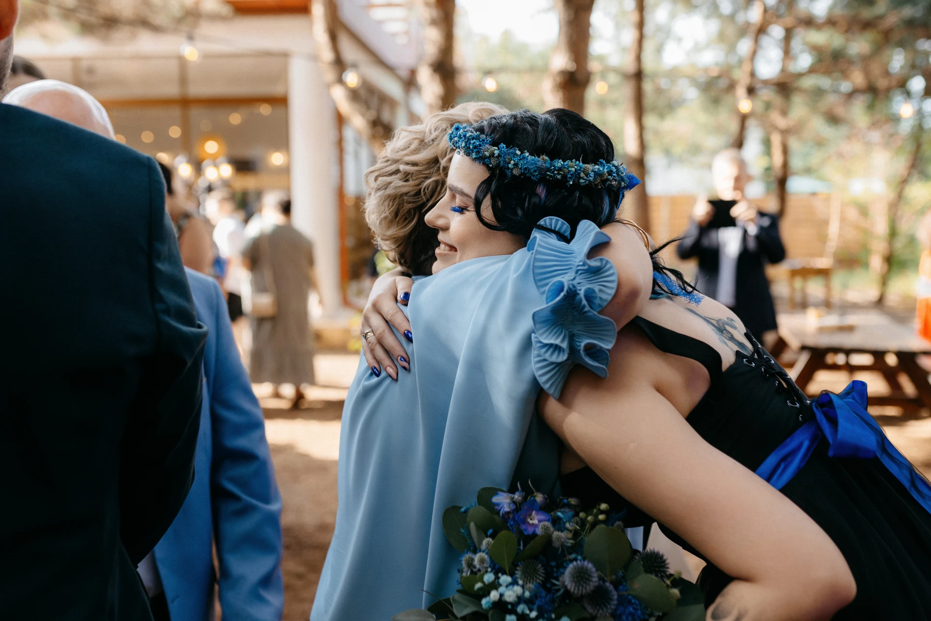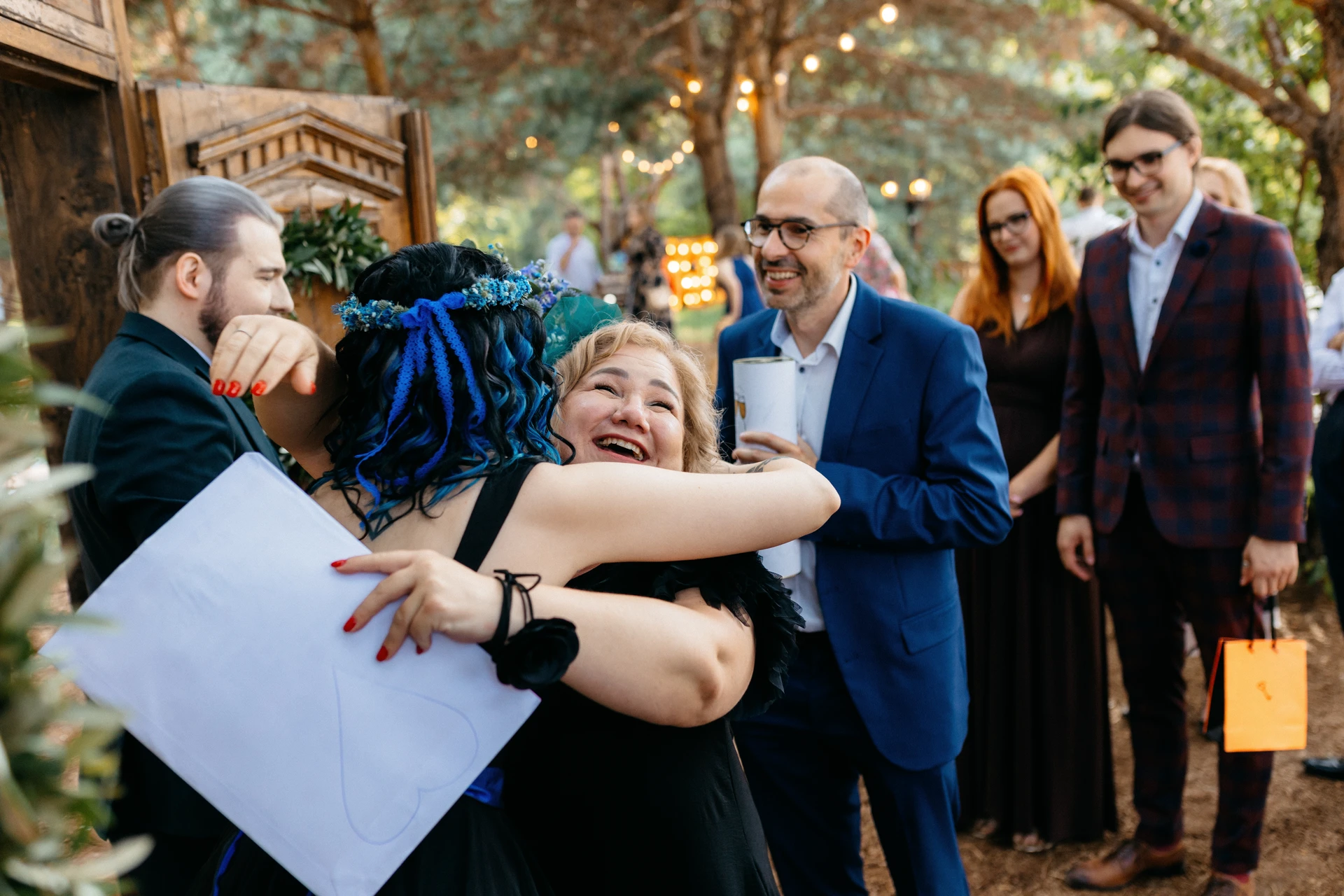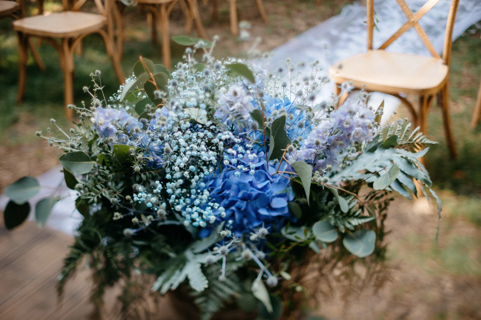 Ceremonia ślubu cywilnego Julii i Mateusza odbyła się w Miodowym Zakątku, miejscu, które wprost idealnie nadaje się do powiedzenia „tak” blisko natury. Altanka ślubna, otoczona przez wysokie drzewa jest totalnie częścią leśnego krajobrazu. Wyobraźcie sobie ciepły lipcowy dzień, słońce przedzierające się przez liście, delikatny wiatr poruszający gałęziami – dokładnie tak wyglądała ta magiczna ceremonia. Goście zebrali się wokół altanki, a atmosferę co i rusz wypełniały wzruszenia i szczere, szerokie uśmiechy.