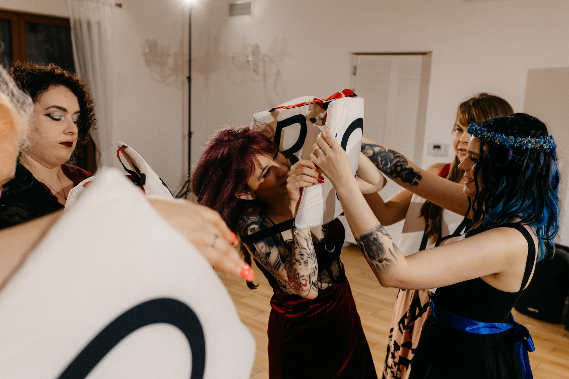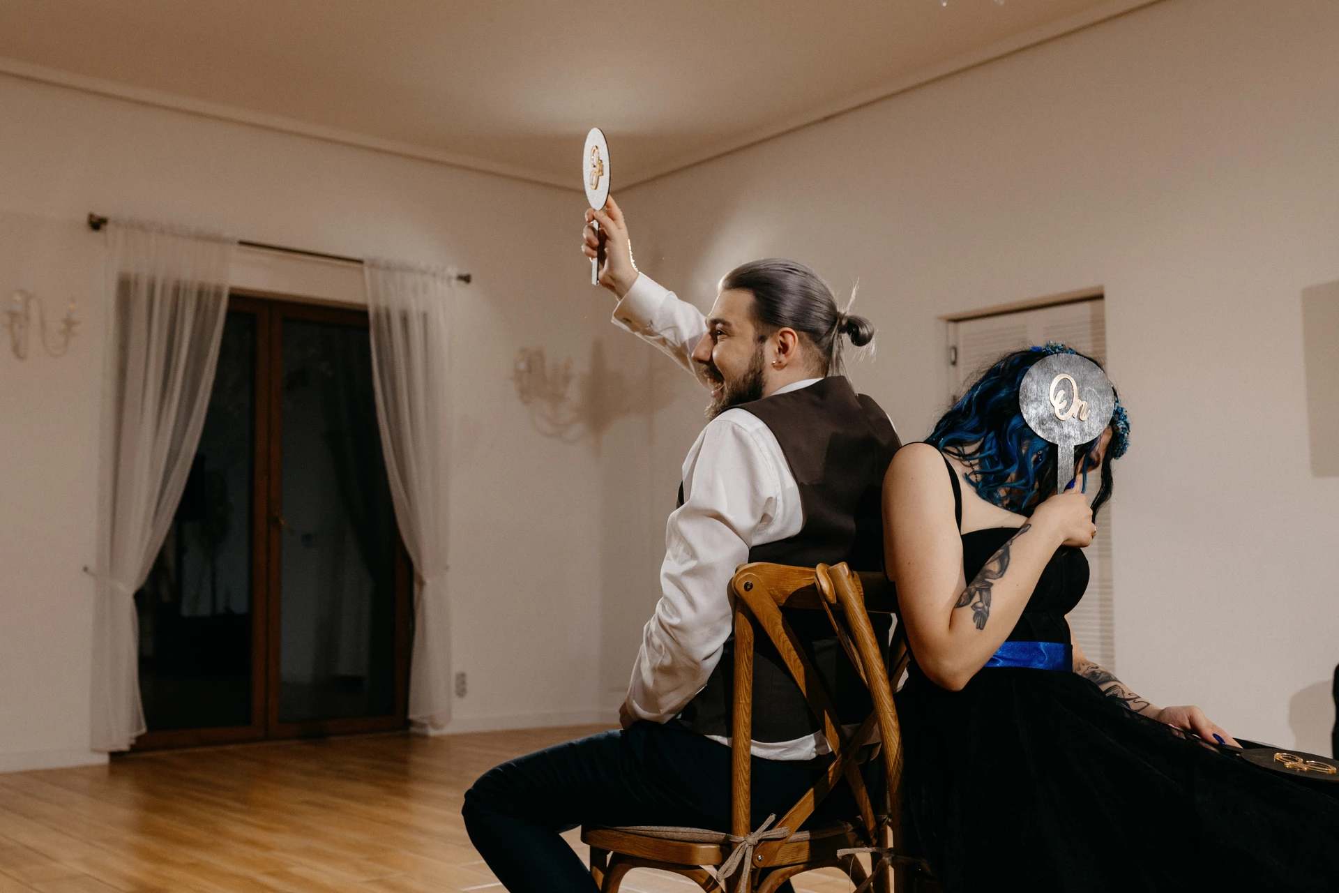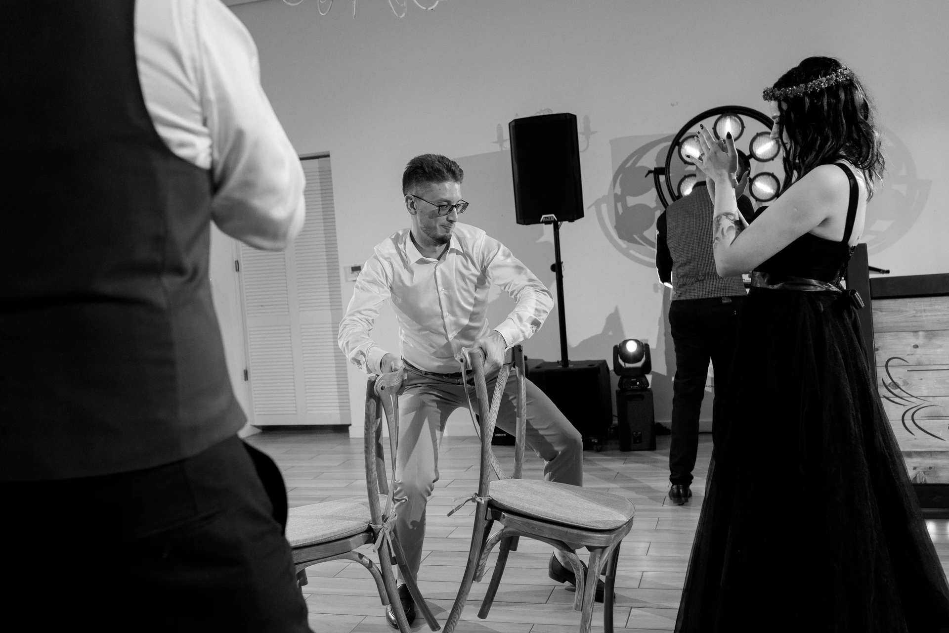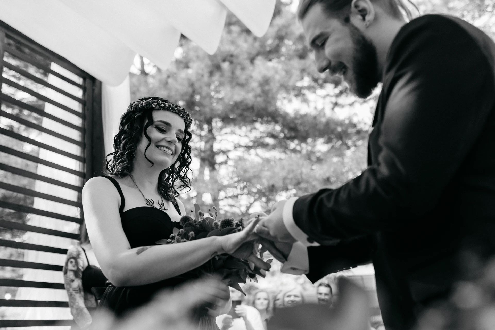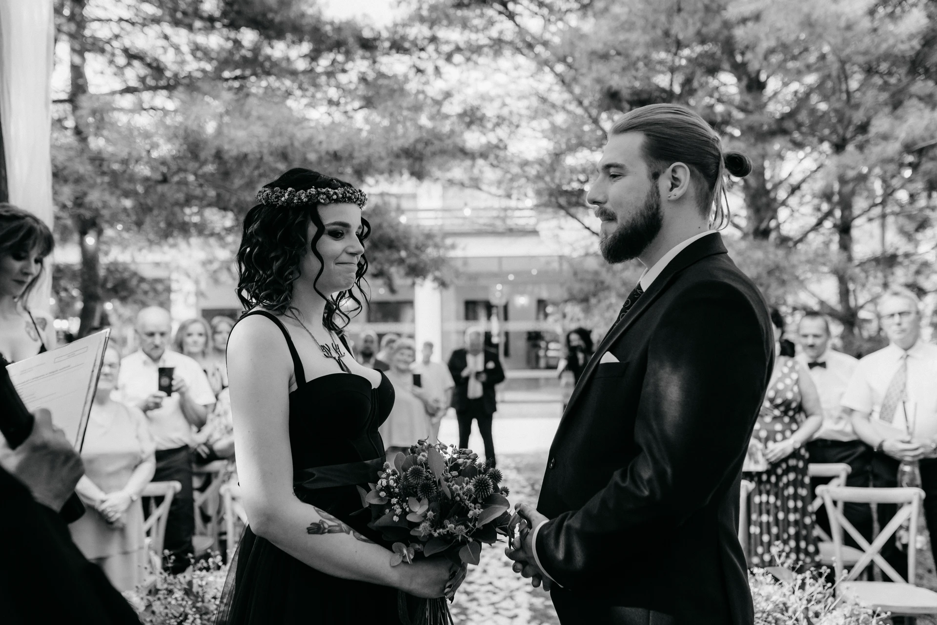 Ale… najciekawszym i najbardziej nieoczywistym dla nas punktem przygotowań okazała się suknia Julii. I to nie byle jaka – czarna! Powiedzieć, że było to zaskoczenie, to mało. Wybór totalnie poza schematami, a jednocześnie tak idealnie pasujący do jej osobowości. I szczerze – uwielbiamy, gdy pary decydują się na coś nietypowego, coś, co odzwierciedla ich prawdziwy charakter. Czarna suknia Julii to dowód na to, że śluby mogą być tak różnorodne, jak ludzie, którzy je celebrują. Nic nie cieszy nas bardziej niż widok zakochanych w sobie ludzi, którzy biorą ślub na własnych zasadach, bo w końcu to ich dzień, ich historia i ich chwile, które zostaną z nimi na zawsze.