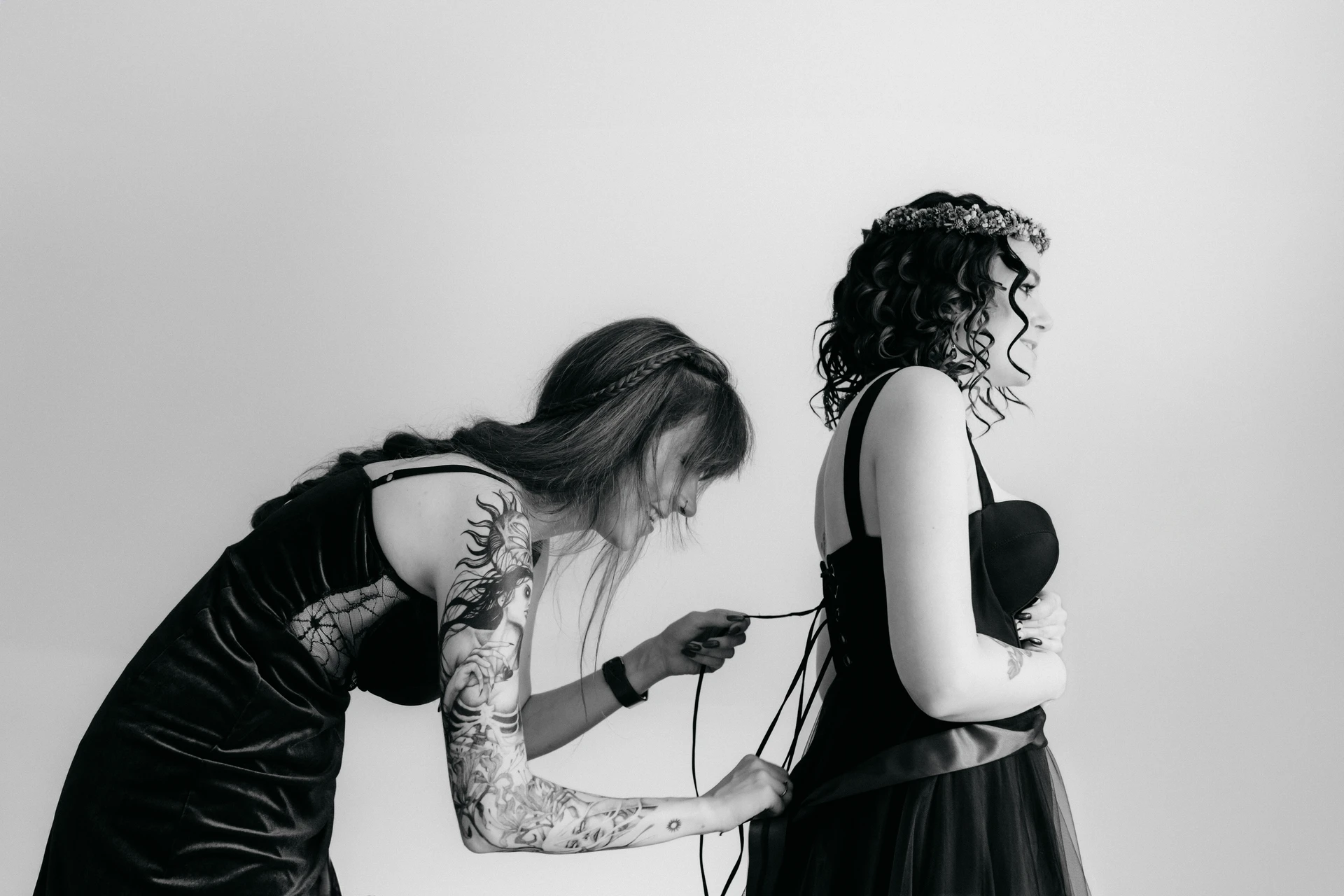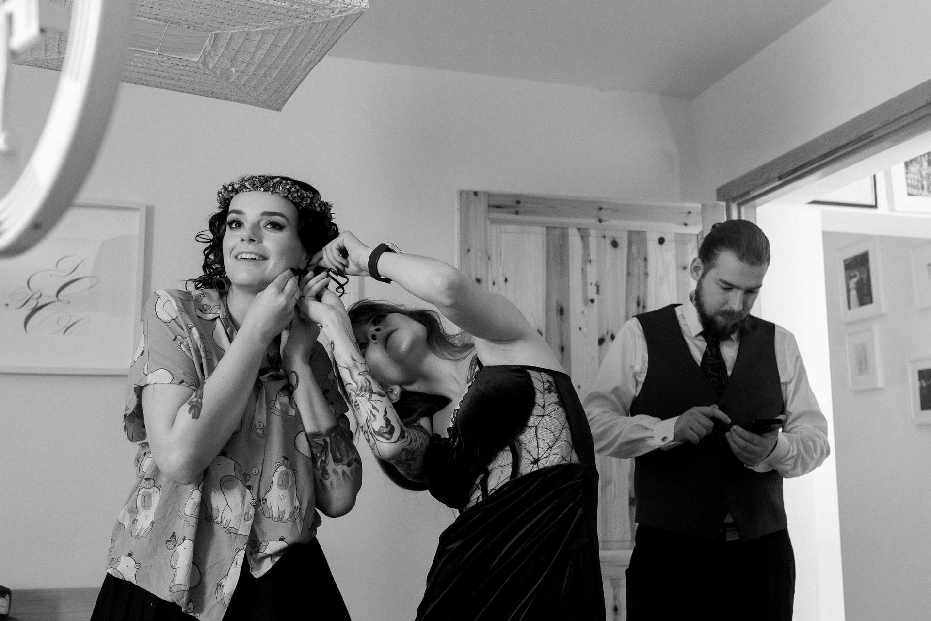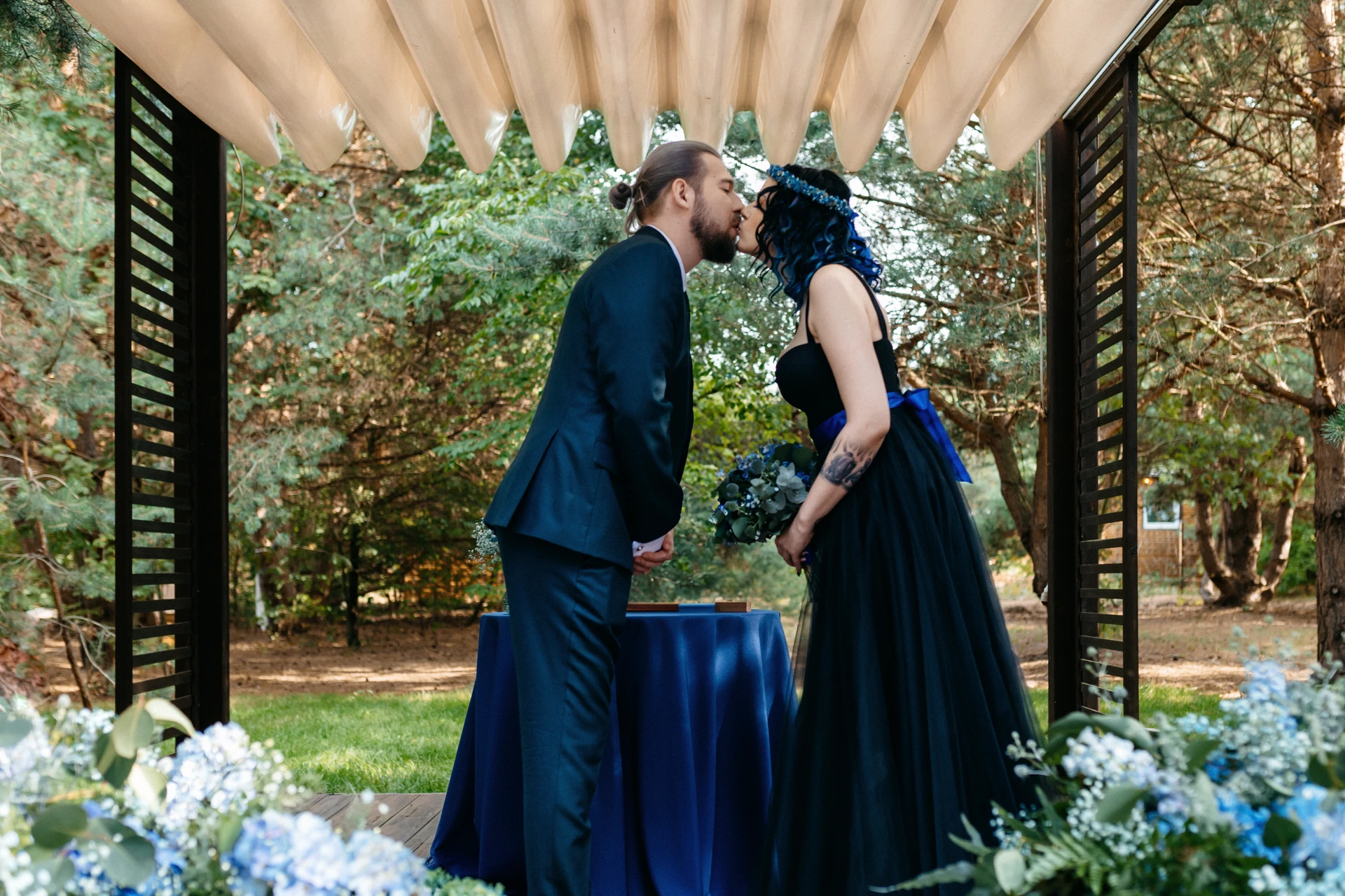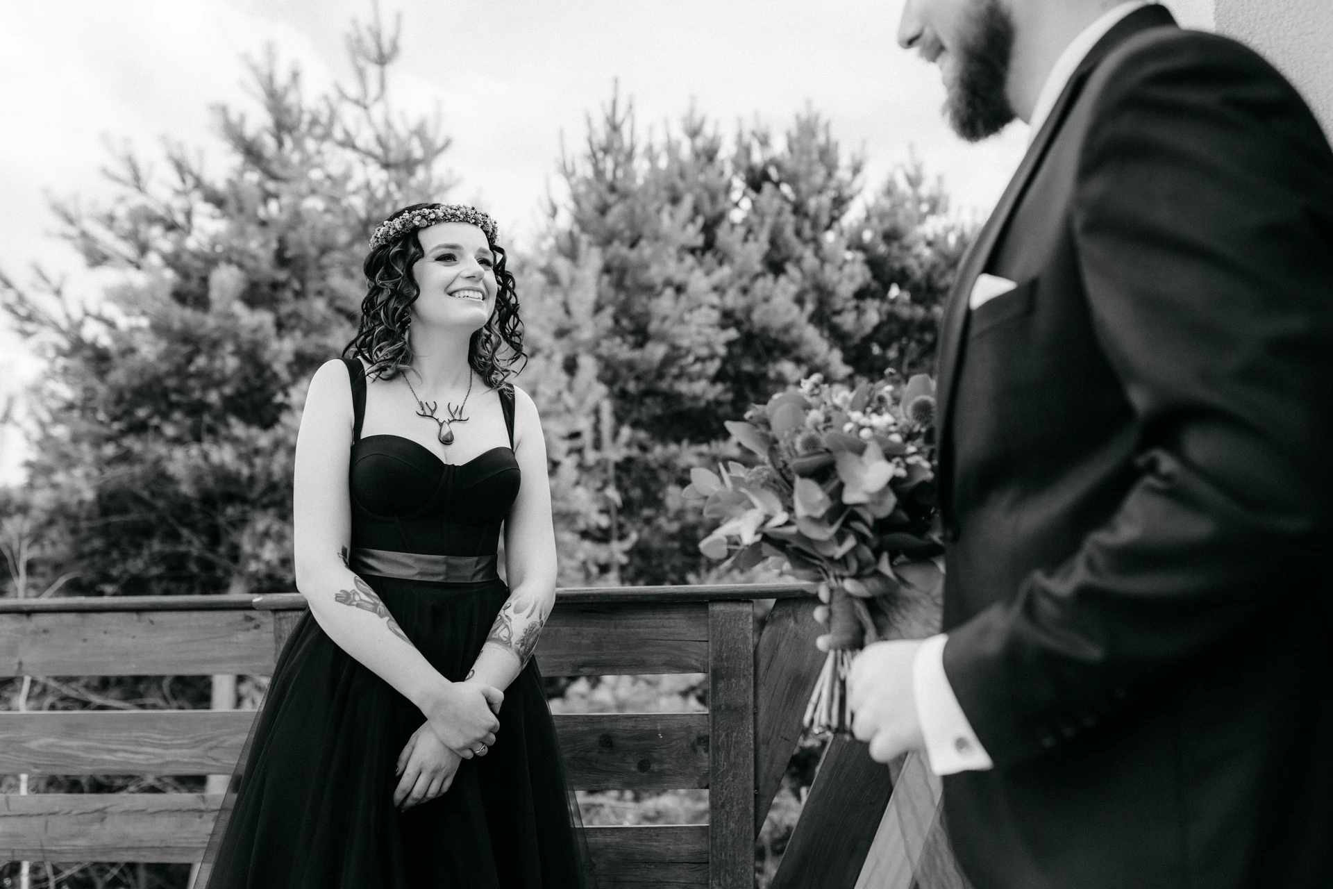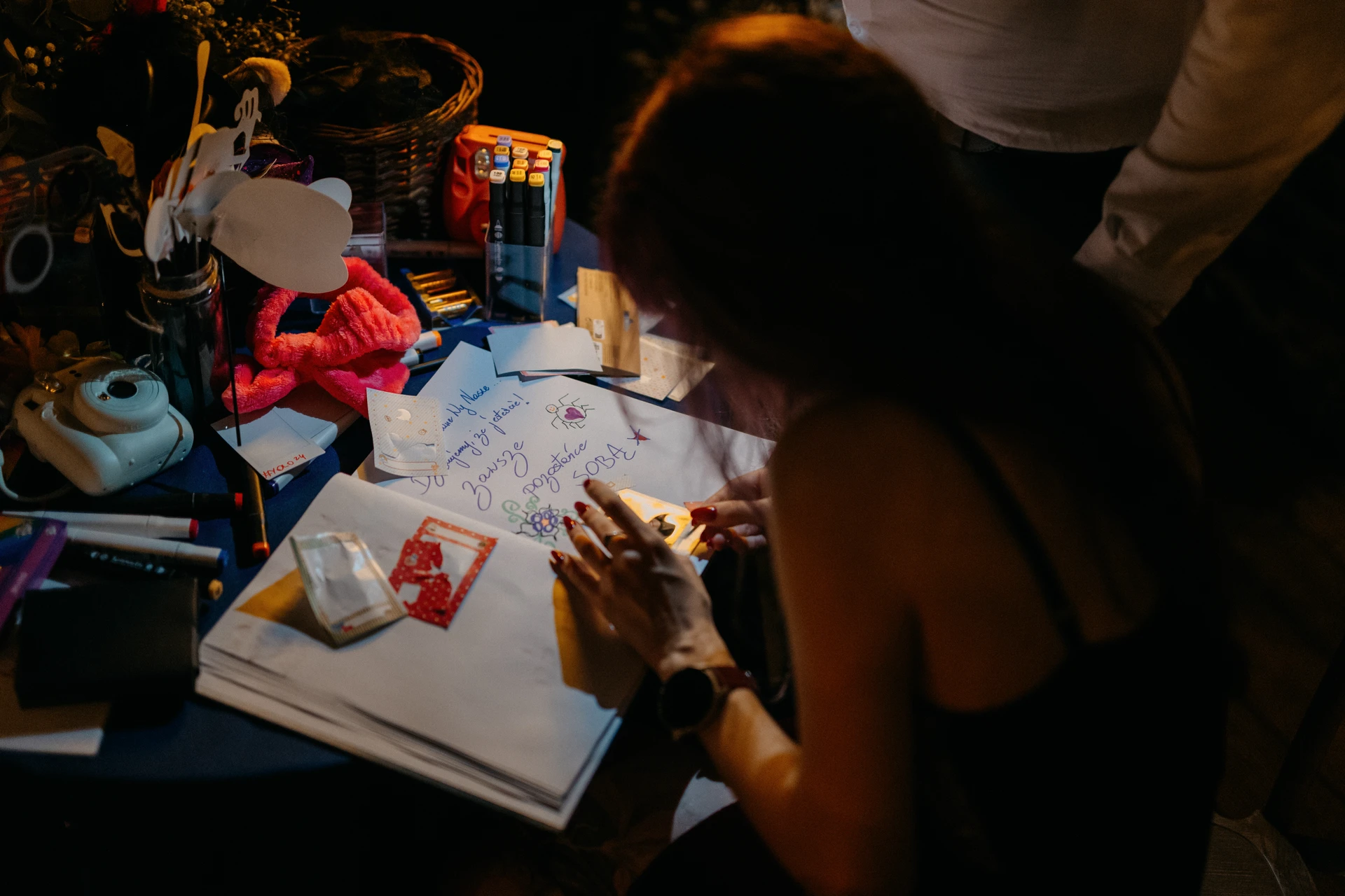 Ale… najciekawszym i najbardziej nieoczywistym dla nas punktem przygotowań okazała się suknia Julii. I to nie byle jaka – czarna! Powiedzieć, że było to zaskoczenie, to mało. Wybór totalnie poza schematami, a jednocześnie tak idealnie pasujący do jej osobowości. I szczerze – uwielbiamy, gdy pary decydują się na coś nietypowego, coś, co odzwierciedla ich prawdziwy charakter. Czarna suknia Julii to dowód na to, że śluby mogą być tak różnorodne, jak ludzie, którzy je celebrują. Nic nie cieszy nas bardziej niż widok zakochanych w sobie ludzi, którzy biorą ślub na własnych zasadach, bo w końcu to ich dzień, ich historia i ich chwile, które zostaną z nimi na zawsze.