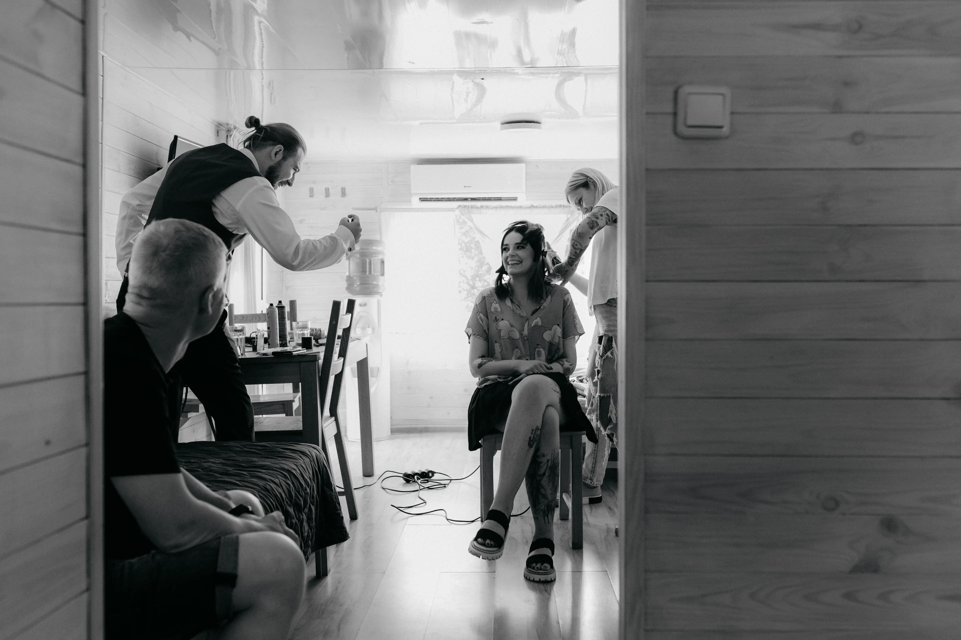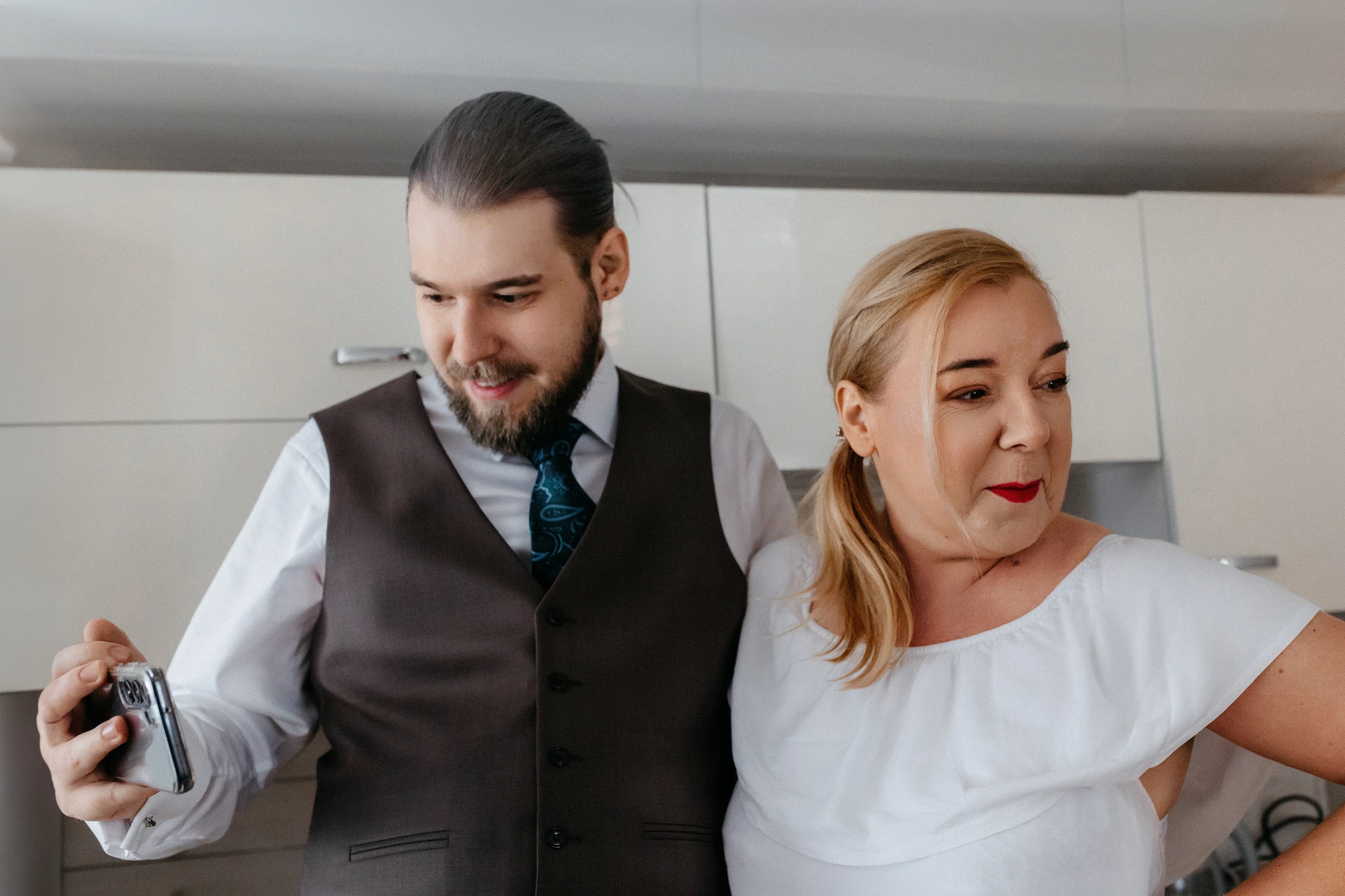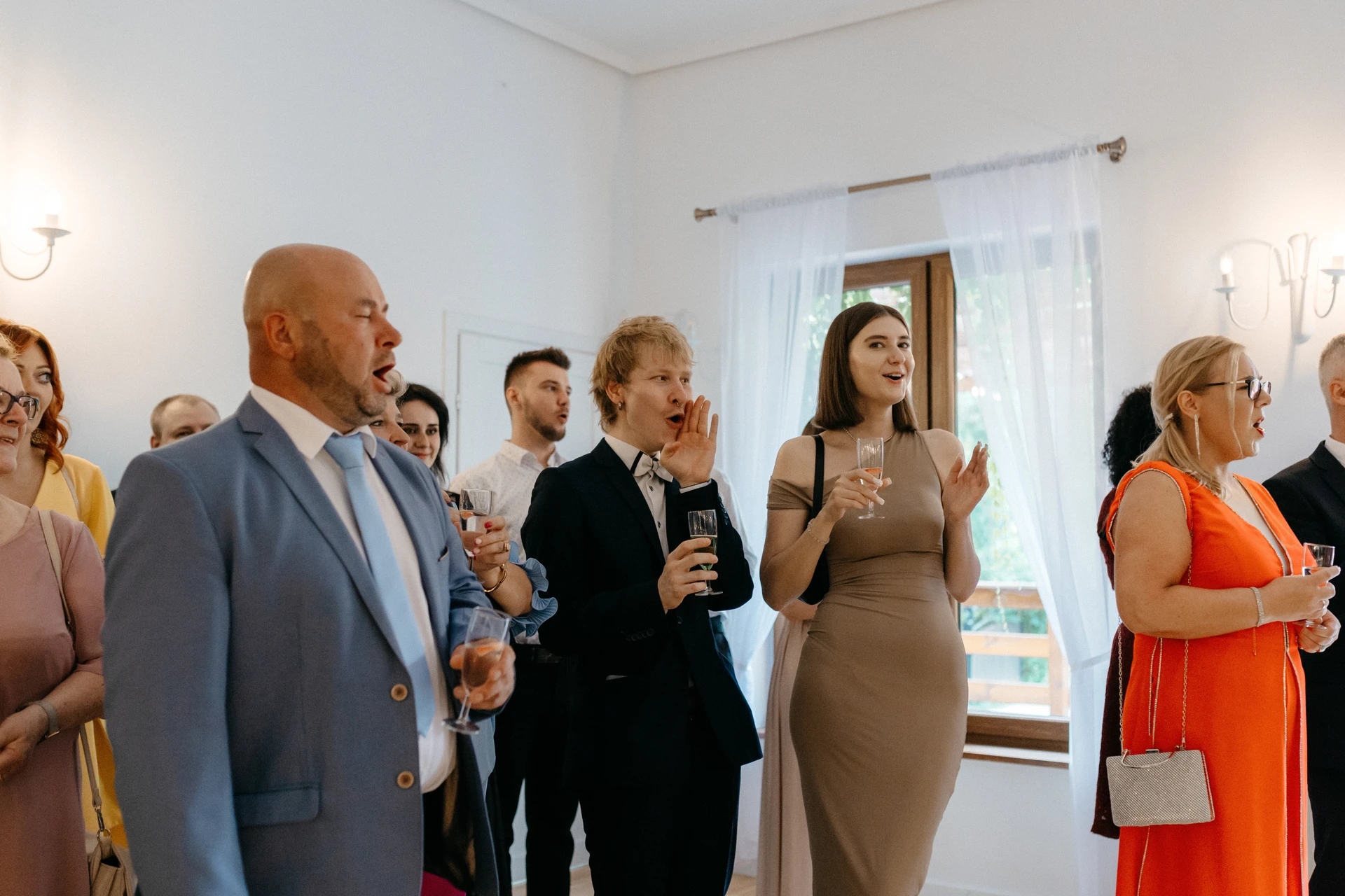 Są takie śluby, podczas których już od pierwszych chwil po wejściu czujemy, że to będzie coś wyjątkowego. U Julii i Mateusza przygotowania toczyły się w atmosferze totalnego luzu – żadnego stresu, tylko szczera radość i bliskość najważniejszych osób. Przez cały czas w pokojach Miodowego panował prawdziwy rodzinny gwar: bliscy wpadali, żeby sprawdzić, co słychać, przytulić, rzucić jakiś dowcip albo podzielić się miłym wspomnieniem. Zero nerwowych bieganin, same pozytywne wibracje. Ktoś przyniósł niebieskiego Monstera, gdzieś w tle słychać wybuchy radości, a Mateusz i Julia szykowali się do ceremonii jakby to był zwykły, miły dzień, a nie chwila przed powiedzeniem „tak”.