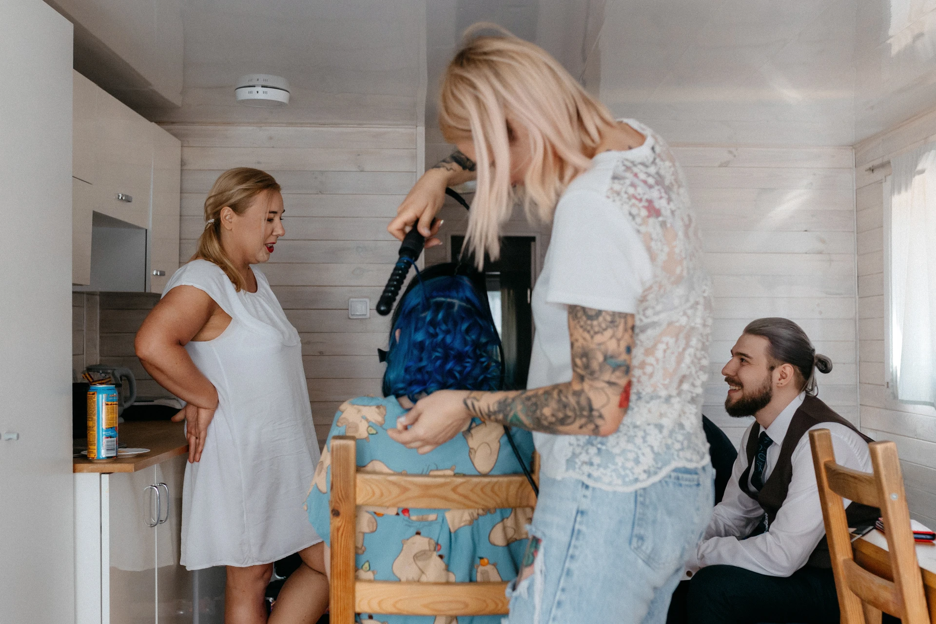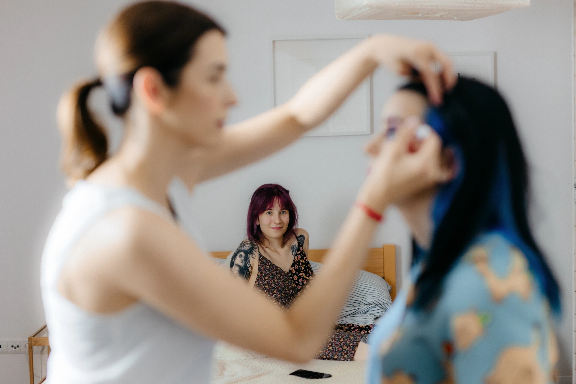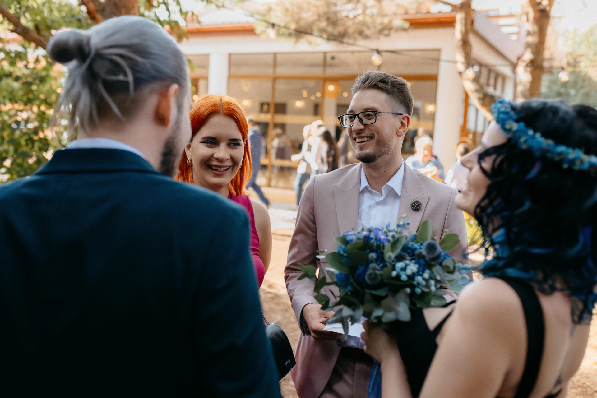 Są takie śluby, podczas których już od pierwszych chwil po wejściu czujemy, że to będzie coś wyjątkowego. U Julii i Mateusza przygotowania toczyły się w atmosferze totalnego luzu – żadnego stresu, tylko szczera radość i bliskość najważniejszych osób. Przez cały czas w pokojach Miodowego panował prawdziwy rodzinny gwar: bliscy wpadali, żeby sprawdzić, co słychać, przytulić, rzucić jakiś dowcip albo podzielić się miłym wspomnieniem. Zero nerwowych bieganin, same pozytywne wibracje. Ktoś przyniósł niebieskiego Monstera, gdzieś w tle słychać wybuchy radości, a Mateusz i Julia szykowali się do ceremonii jakby to był zwykły, miły dzień, a nie chwila przed powiedzeniem „tak”.