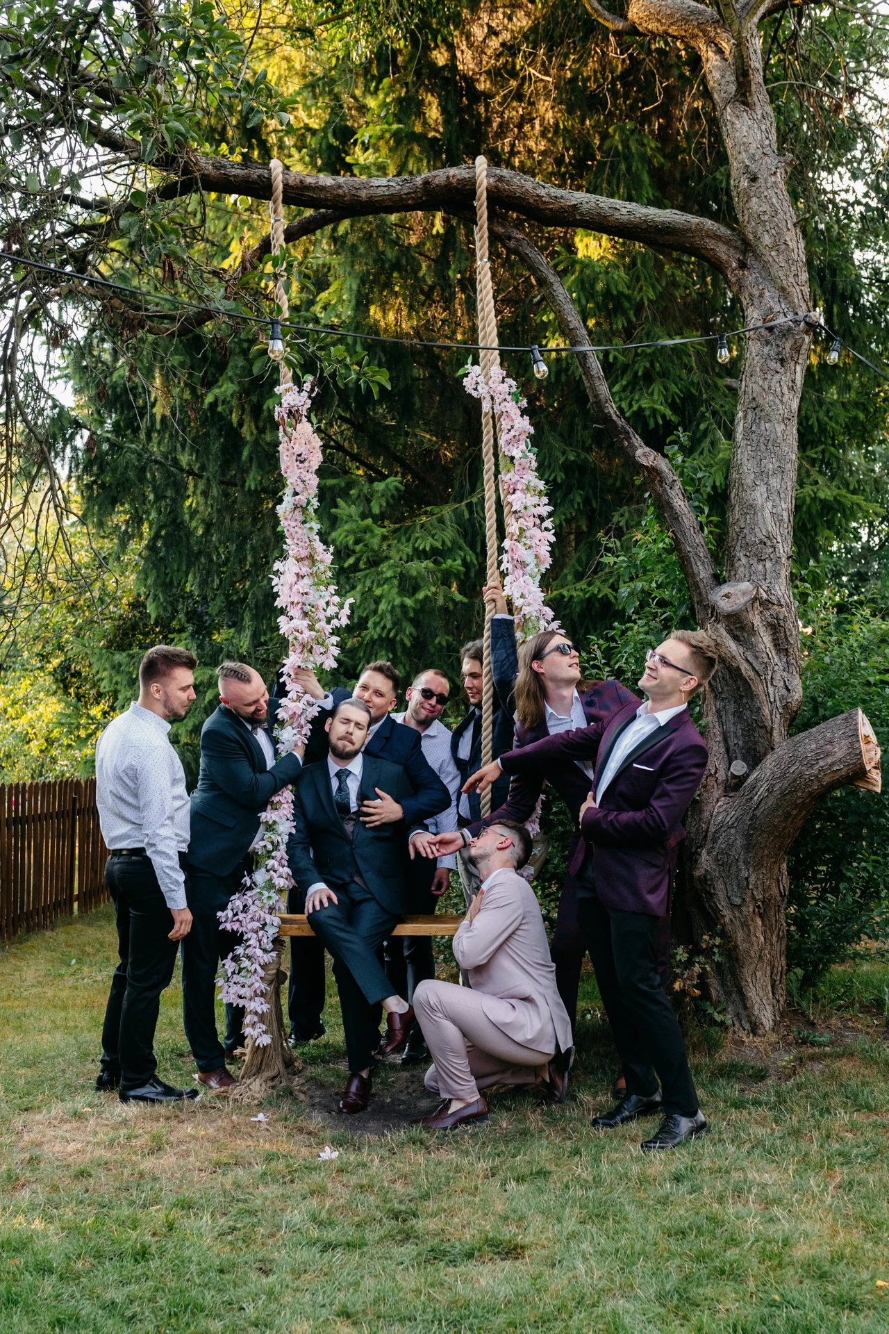 I wiecie co? Śluby cywilne w plenerze to dla nas zawsze strzał w dziesiątkę. Mają w sobie luz, naturalność i niesamowitą magię, która czyni każde „tak” jeszcze bardziej niezapomnianym. To wszystko pięknie wychodzi na zdjęciach: światło, które gra na twarzach, otoczenie, które jest najlepszą dekoracją, i uczucie, które bije z każdej pary oczu. Co więcej, zorganizowanie ślubu i wesela w jednym miejscu, tak jak to zrobili Julia i Mateusz, to naprawdę genialne rozwiązanie. Żadnego jeżdżenie z miejsca na miejsce, zero stresu o logistykę, tylko płynne przejście od wzruszającej ceremonii do wspólnego świętowania. Dzięki temu wszyscy mogą cieszyć się chwilą, a każda minuta jest pełna radości, zamiast napięcia i pośpiechu. Wielkie polecanko!