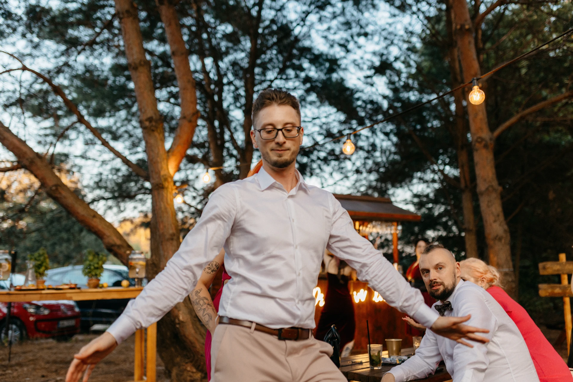 Jako fotografowie ślubni widzieliśmy wiele miejsc, ale Miodowy Zakątek ma w sobie coś absolutnie niepowtarzalnego. Już od pierwszego kroku czuć, że natura tutaj gra główną rolę – otoczenie lasu, ciepłe, drewniane detale i wszechobecna zieleń tworzą scenerię, która sama się fotografuje. Miejsce to jest jak stworzone dla par marzących o atmosferze pełnej luzu. Światło, bliskość lasu, drewniane elementy w miodowych odcieniach i przestrzeń do odpoczynku w strefie chilloutu sprawiają, że zdjęcia nabierają wyjątkowego klimatu. Miodowy Zakątek to fajne miejsce na ceremonię ślubną w plenerze oraz wesele, – dla nas jako fotografów, to kompleksowe miejsce o wielkim potencjale i klimacie. Chętnie tam wrócimy.